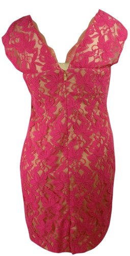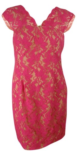 Product DescriptionDress features full lining, V-neck and back, sleeveless, cotton blend lace fabric, sheath silhouette, back center vent, and a concealed back zipper closure.0