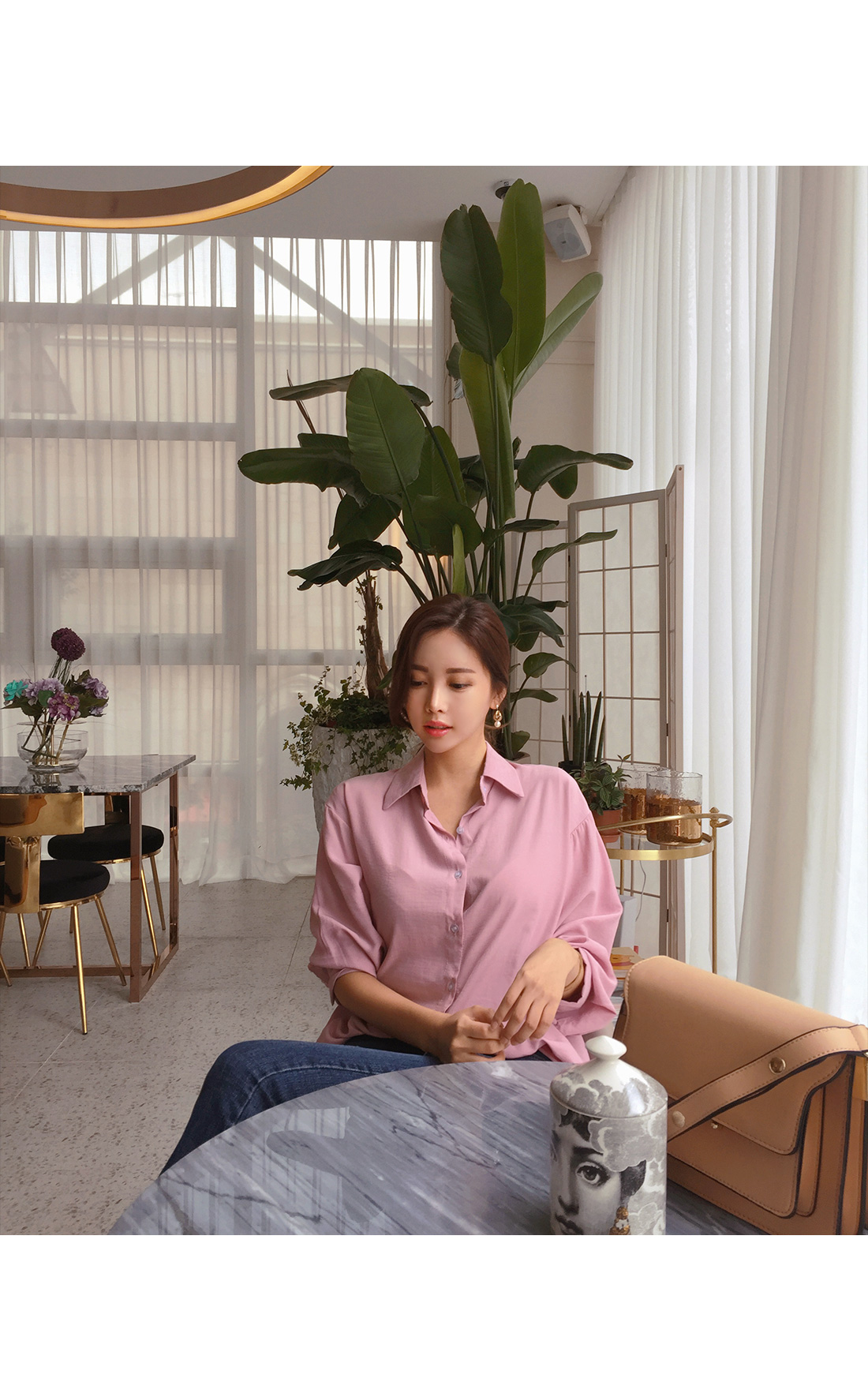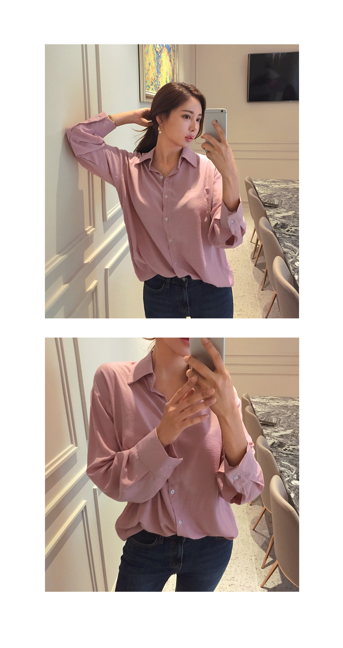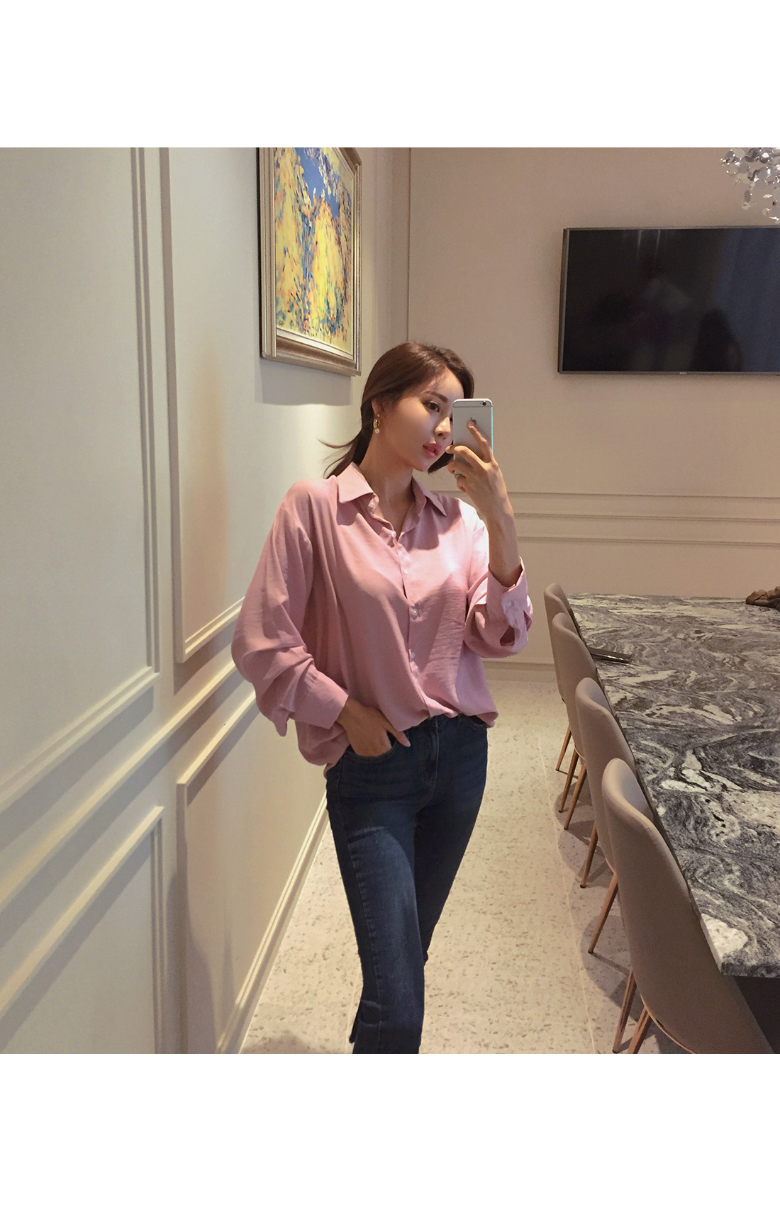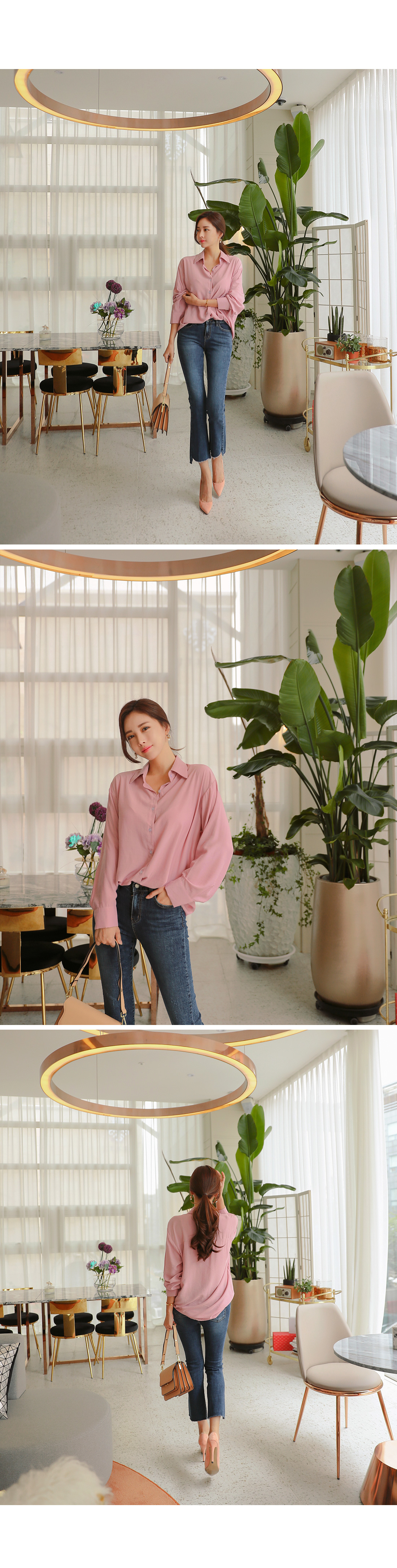 힙을 넉넉하게 덮어주는 루즈핏 블라우스랍니다 !