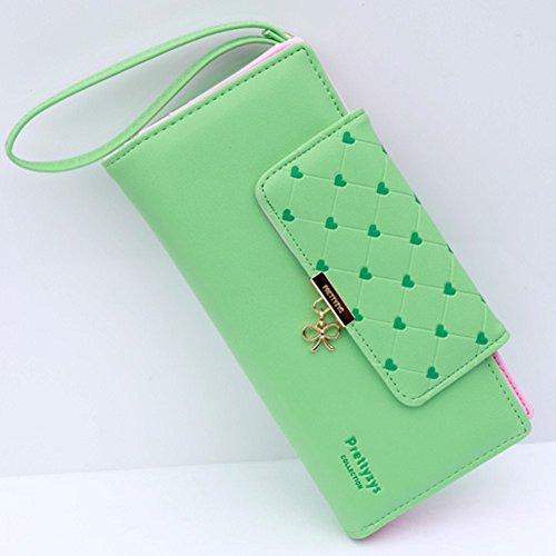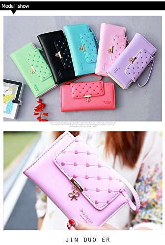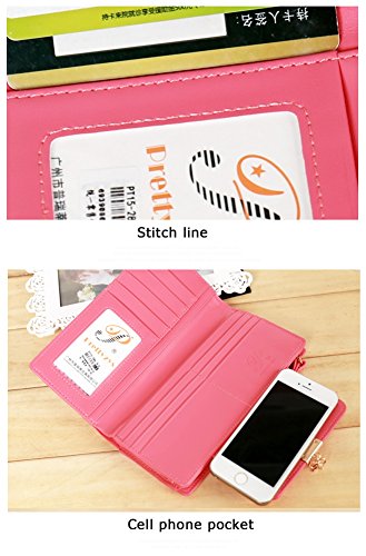 -. Feature : Product Dimensions: 7.5 x 3.5 x 1 inches / Material: super soft synthetic leather, lightweight, durable and fashionable / Our purses comes in these dazzling colors: Green, Pink, Black, Purple, Blue, Red / Wrist Holder - allow you to keep your purse close to your hand to prevent theft / 1 Photo Frame/ID Window,10 Card Slots, 2 Note Compartment and 2 Accordion Folds (zipper closure) can hold cell phone or cash
