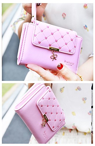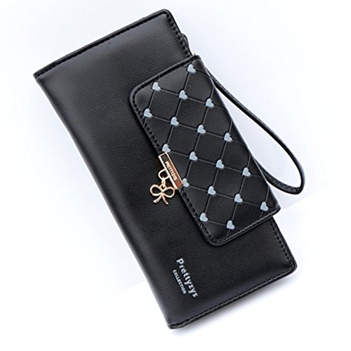 -. Title : Badiya Women's Cute Heart Faux Leather Clutch Wallets Ladies Purses Wristlets