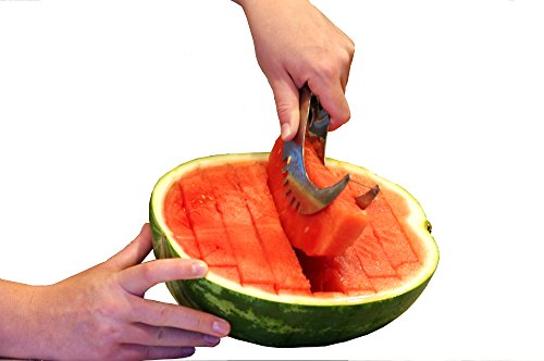 -. Feature : The watermelon slicer's curved design makes it a SAFE KNIFE for easy, convenient cutting. No more worries about cutting hands and fingers! / Once the watermelon is cut, the opposite side of the slicer DOUBLES AS SERVING TONGS. Just flip over the slicer, place it in your cut watermelon, pinch the ends together and pull out your perfectly cut slices. / Makes cutting PERFECT SLICES QUICK, EASY, AND CONVENIENT. Not only will this tool save you time, it also cuts perfect watermelon slices. / MADE FROM HIGH QUALITY STAINLESS STEEL- We stand 100% behind the quality of our products. This watermelon slicer COMES WITH A 1 YEAR WARRANTY. If something happens to your tool, just let us know and we will send you another one! / Add another watermelon slicer as a gift, or any other Oaklyn product and GET 5% OFF YOUR ENTIRE ORDER. Order 3 or more Oaklyn products, GET 10% OFF YOUR ENTIRE ORDER. Click the Oaklyn name above to see our entire selection.