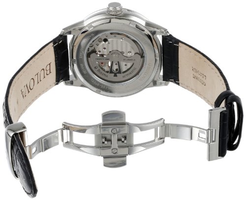 -. Binding : Watch -. Brand : Bulova -. Color : Black -. Department : mens -. EAN : 0042429493476 -. Feature : Due to a recent redesign by Bulova, recently manufactured Bulova watches, including all watches sold and shipped by Amazon, will not feature the Bulova tuning fork logo on the watch face. / Domed mineral crystal / Black dial / Stainless steel case / Water resistant to 99 feet (30 M): withstands rain and splashes of water, but not showering or submersion -. Label : Bulova -. Manufacturer : Bulova -. Model : 96A135 -. MPN : 96A135 -. PackageQuantity : 1 -. PartNumber : 96A135 -. ProductGroup : Watch -. ProductTypeName : WATCH -. Publisher : Bulova -. ReleaseDate : 2012-06-01 -. Studio : Bulova -. Title : Bulova Men's 96A135 BVA-SERIES 120 Automatic strap Watch -. UPC : 042429493476
