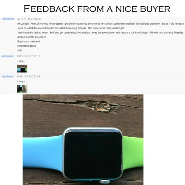 상품 내용 URVOI 새로운 전체 화면 보호기 애플 시계 커버 라디안 TPU 깨끗한 화면 보호 코팅 막 렌즈 무료 배송 우리에게 메시지 크기 (38 미리메터/42 미리메터), 또는 우리는 42 미리메터 보호기 기본. 감사합니다. 우리는 또한 많이 판매, 더 판매자에게 문의하시기 바랍니다. 감사합니다! 판매자의 제안: 1. 주문 1 개.(경우 당신의 선적 후 40 일 이내에 배송 날짜, 문의드립니다. 우리는 선적 및 다시 함께 가능한 빨리 회신.) 2. 2 개 또는 중국 포스트 등록 된 항공 우편 배송됩니다; 3. 우리는 당신이 주문 2 개 이상 때문에 처음 붙여 커버 좋고 편하고 실패 및 2 개 더 5% 할인, 및 꼭 최종 선택 따라 자신을; 4. 어떤 질문 판매자 먼저 좋고 우리는 할인 제공 ^_^; 5. 우리의 목표는 고객! 설명: 1.100% 브랜드 새로운 높은 품질; 2. 쉽게 삽입 및 제거, 완벽하게 시계; 3. 절묘한 디자인; 4. 완벽한 당신의 친구 및 가족을위한 선물로. 패키지 포함: 1x화면 보호기 시계 ( 포함하지 시계); 1 x 소매 포장. 링크 많이 판매 >>>> ![]() 2015-11-05 01:25:38 안녕하세요 Lyndon. 포인트 관심. 보호 제 시계 나와 지금 거의 완전 딱!! 아니 거품 더이상. 그것은 경우 오래 유지 시계 더 " 녹 " 시계 어울리는 부드러운. 이 보호 정말 놀라운! 딱 알려. 당신이 얻을 complains, 그들은 계속 보호 및 정기적으로 손가락 문질러. 광산 지금 판매에 화요일 이후 모든 거품!! 즐길. Kindest 안부 사진 아래 참조: 아래 실제 제품 효과 사진: 피드백 1. 우리는 우리의 Aliexpress 명성과 고객 만족에 의존 성공합니다. 따라서, 피드백을 매우 중요한, 우리에게 좋은 의견을 남겨주세요 경우 상품 및 서비스. 2. 우리는 우리의 소중한 고객에게, 항상 당신이. 3. 어떤 문제를 해결할 수있는 기회를. 이해 우려가 및 좌절감을 가지고, 해결하기 위해. 4. 어떤 부정적인 의견을 떠나기 전에 이메일을 보내 열기 사이트에 분쟁을. 우리는 문제를 해결하는 데 도움이됩니다. 선적 1. 결제 후 배송됩니다. 2. 운송 및 방법, aliexpress 사람이. 그들은 당신에게 최고의 서비스. 5. 우리는 어떤 사고, 지연 또는 기타 문제에 책임을 배송 서비스. 6. 모든 수입 요금이나 수수료는 구매자의 책임입니다. 7. 바랍니다 신중하게 주소를 때 처리. 8. 우리에게 어떤 질문, 우리는 당신에게 만족스러운 답변. 지불 1. 주문하기 전에, 공급 가격 및 기타 세부 사항을 확인하시기 바랍니다. 2. 우리는 에스크로 지불. 3. 3 일 이내에 주문. 4. 우리는 기본 aderess alipay의. 않는 경우, 저희에게 알려. 5. 당신이 전체 설명을 읽고 동의 거래 전에 포장 상세