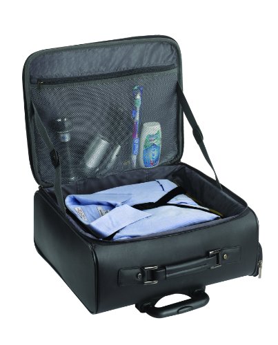 - Feature : Removable padded sleeve protects laptops up to 15.6" with dual access sleeve removal / File pocket, front zippered pocket and zip-down organizer section / Overnighter section / Leather body with cushioned handle and hidden telescoping handle system