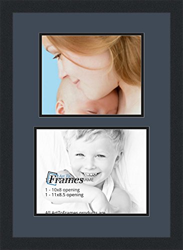 ArtToFrames Collage Photo Frame Double Mat with 1 - 8.5x11, 8x10 Openings and Satin Black Frame