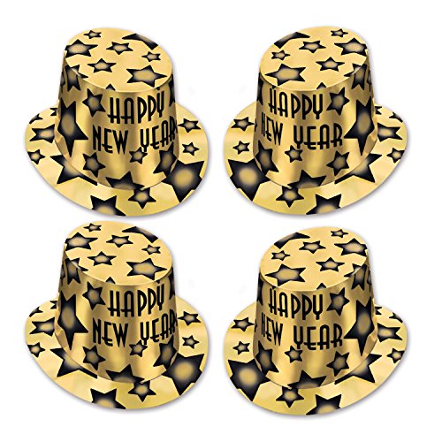 Beistle 88815BKGD25 Gem-Star Hi-Hat Party Favors, Gold/Black