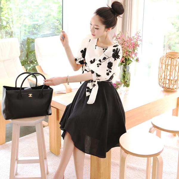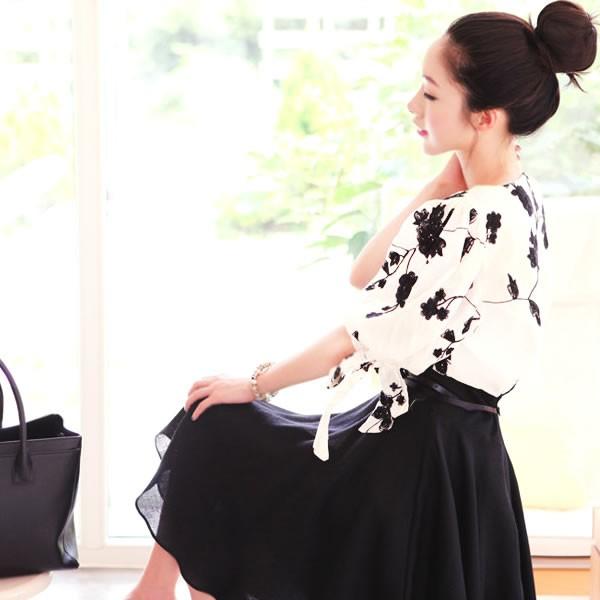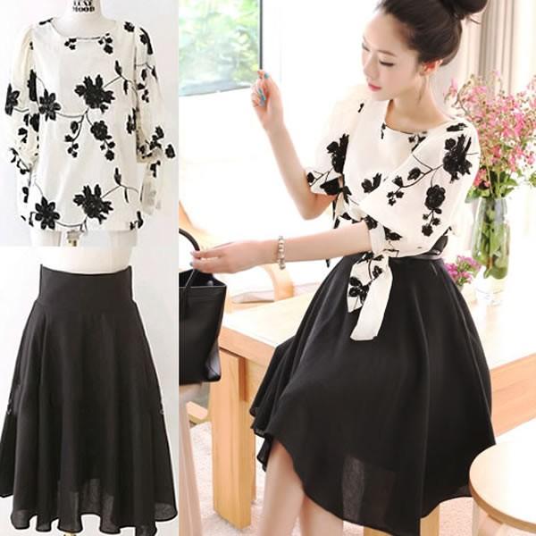 | 刺繍ブラウス シフォンスカート セットアップ ベルト付き ホワイト ブラック 無地 【セットアップ トップス スカート レディース 女性 黒 black フラワー 刺繍 カットソー シフォン フレアスカート 膝丈 ロンデルブラック 春夏】 | |