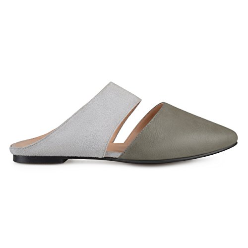 -. Binding : Apparel -. Brand : Brinley Co -. Department : womens -. Feature : These pointed toe flats are made with faux leather and faux suede man-made materials / A pointed-toe shape is highlighted on this flat shoe design / Heel height/type: 0.30-inch block / Platform height: 0.42-inch sole / Width: Medium -. ProductGroup : Shoes -. ProductTypeName : SHOES -. Title : Brinley Co. Womens Faux Suede Faux Leather Slip-on Mules