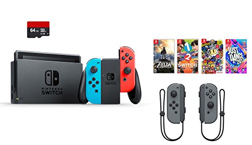 -. Title : Nintendo Switch 7 items Bundle:Nintendo Switch 32GB Console Red and Blue,64GB Micro SD Card and Nintendo Controllers Gray,4 Game Disc1-2-Switch Just Dance2017 The Legend of Zelda Super Bomberman R