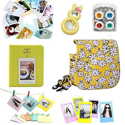 CLOVER Accessory Bundles Set For Fujifilm Instax Mini 8 Instant Camera (Yellow Floral Case Bag/ Album/ Rabbit Self-Portrait Mirror/ Close-Up Lens(Filter)/ Photo Frame/ Decor Sticker/ Wall Frame)