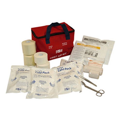 -. Feature : 86-piece first aid kit for treating minor and moderate sports related injuries / Contains supplies for treating cuts, abrasions, burns, headaches, motion sickness, and insect bites / Comes in a zippered fabric case with carrying handle / Contents inside box may be substituted with equivalent products in different brand names
