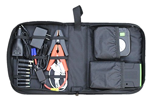Multi-function Jump Starter : 5 in 1 car jump starter power bank: auto 12 V emergency jump starter, car battery charger, 4 in 1 mobile phone power station, 7 in 1 laptop charger and LED emergency light.