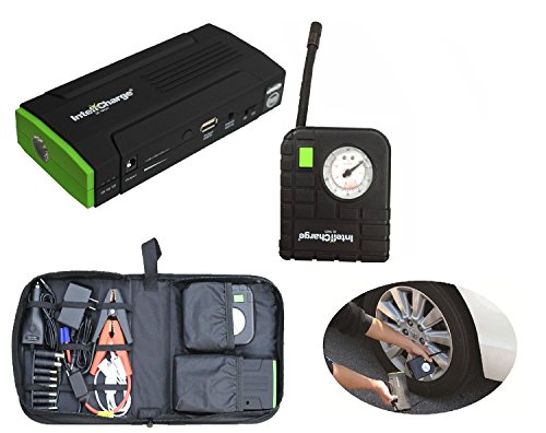 InteliCharge X1 13600mAh Portable Power Bank and Tire Compressor Bundle with Jumper Cable, Smart Phone Car Charger and Case