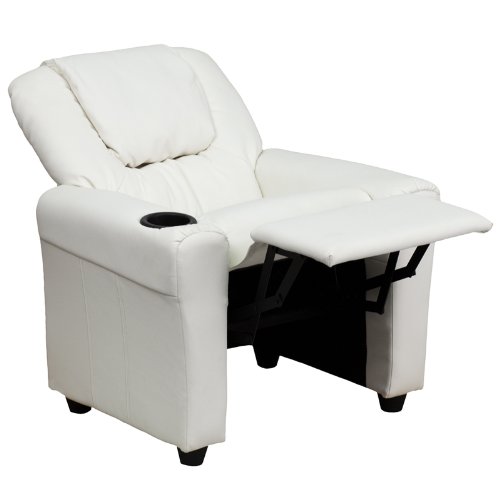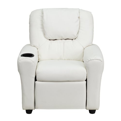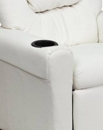 Kids will now be able to enjoy the comfort that adults experience with a comfortable recliner that was made just for them This chair features a strong wood frame with soft foam and then enveloped in durable vinyl upholstery for your active child. Choose from an array of colors that will best suit your child's personality or bedroom. This petite sized recliner is highlighted with a cup holder in the arm to rest their drink during their favorite show or while reading a book. [DG-ULT-KID-WHITE-GG].Feature