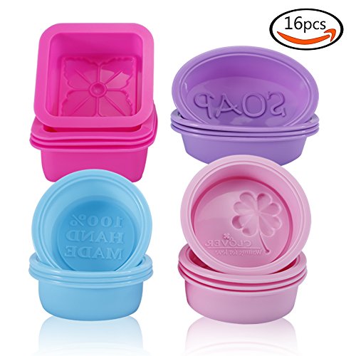 KLEMOO Silicone Soap Molds, Non-stick Soap Making Supplies, 16-Pack Silicone Molds for Soap Making & Baking, Cupcake Liners Muffin Pan, Make Your Own Handmade Soap