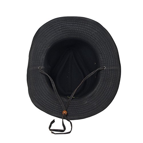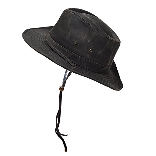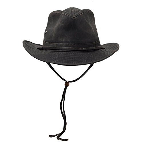 Binding : Apparel Product Description This Dorfman Pacific Weathered Outback Bushmaster Hat is ruggedly appealing, while providing sun protection that will shield you from the sun's harmful rays. Features include a weathered cotton finish, leather trim, and removable chin chord. An ultraviolet protection factor of 50 allows you to be outdoors all day without worrying about a burnt nose and rosy cheeks. Customize the fit by adding the included size reducing tape on the interior--simple instructions included! Perfect for your next safari or a drive in your convertible! Multiple sizes available. 0