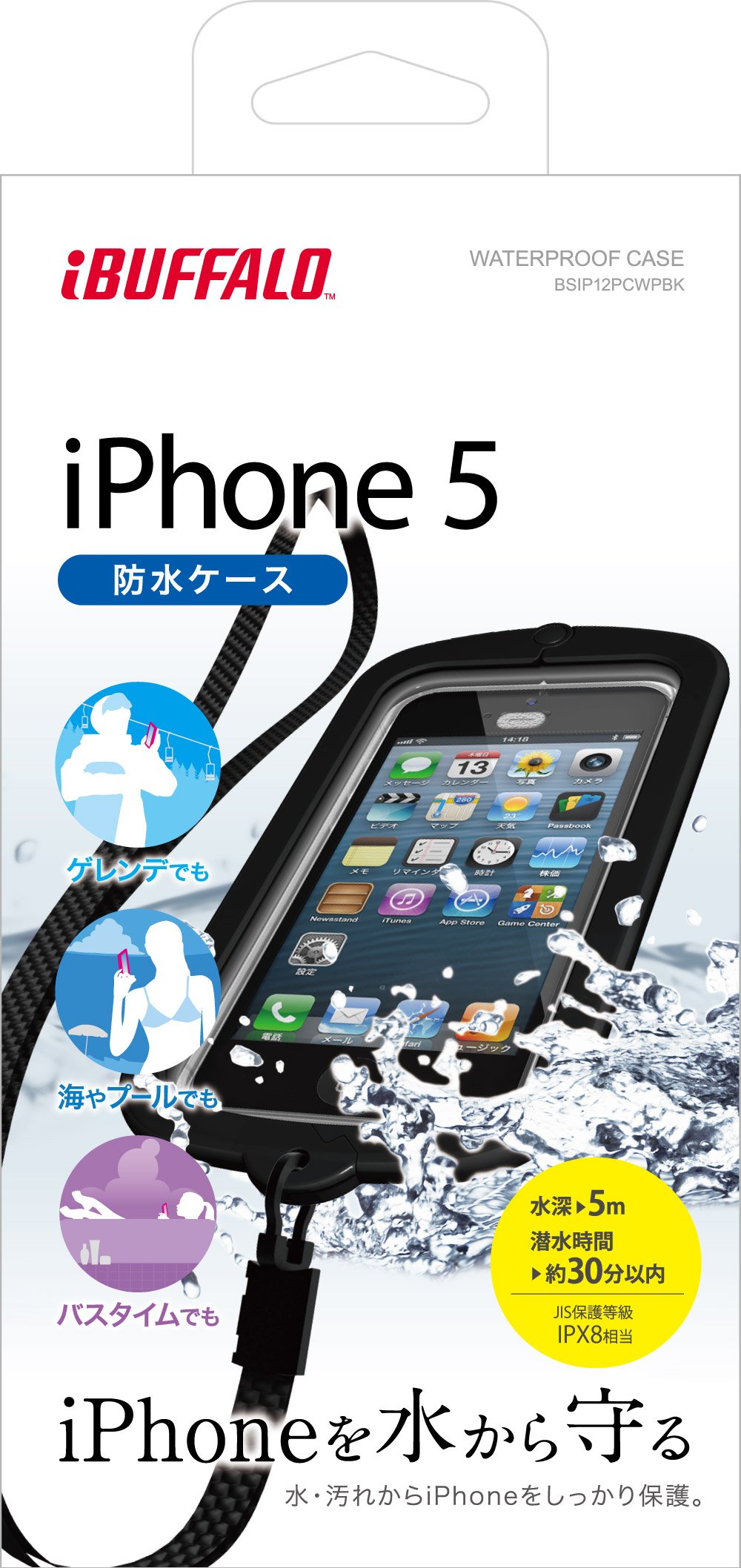● Depth 5 meters, protects iPhone 5 for about 30 minutes diving time ● Neck strap with user-friendliness ● With folding stand