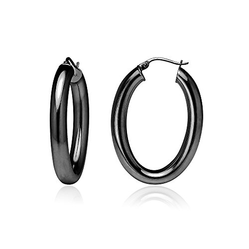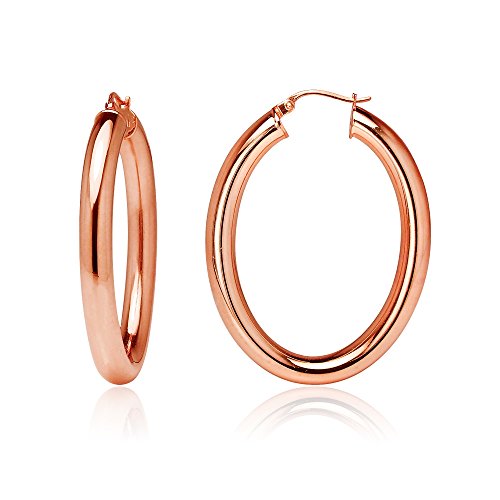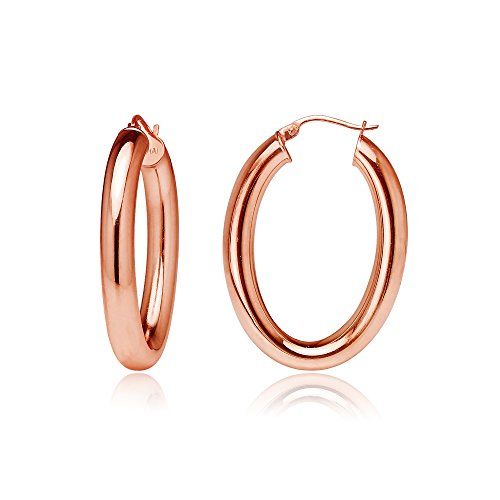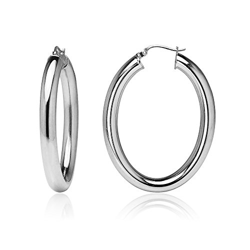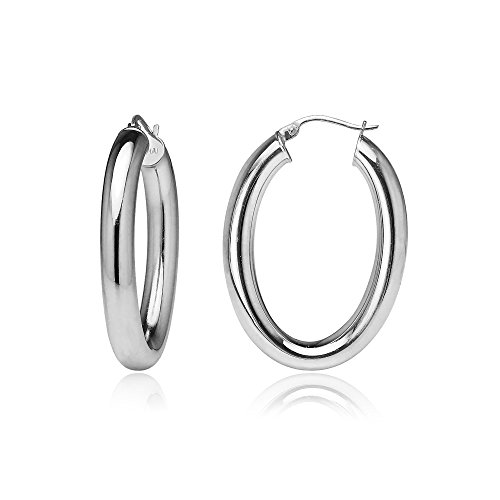 Sterling Silver 4.5mm Oval Hoop Earrings, 25mm, 30mm