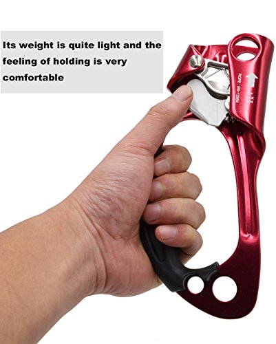 It is a very fine Climbing Hand Ascender, widely used in climbing and climbing trees and other outdoor climbing activities. Unique design for more firmly grasping the rope. The magnesium alloy frame is lightweight and rugged. The ergonomic thermoplastic rubber handle provides good insulation and helps to grip when wet. The thumb release requires two action locks to open, an auto lock off, which can be operated with either hand.Rope diameter minimum 8mm, maximum 12mm. 3 hole accessories (upper one, the bottom 2), different uses determine the type of connection. note: Before using the tool, it is necessary to receive appropriate training (technical knowledge and safety measures). Improper use or improper maintenance may result in serious accidents or even fatal. Please read or learn enough knowledge before use.