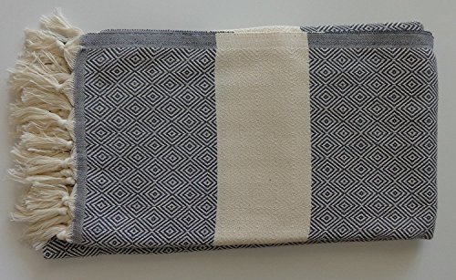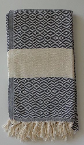 Paramus %100 Natural Turkish Cotton Diamond -Gray for Beach Spa Bath Swimming Pool Hammam Sauna Yoga Pilates Fitness Gym Picnic Blanket htemal (37x"70") 1 pcs