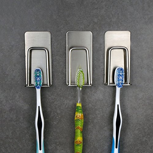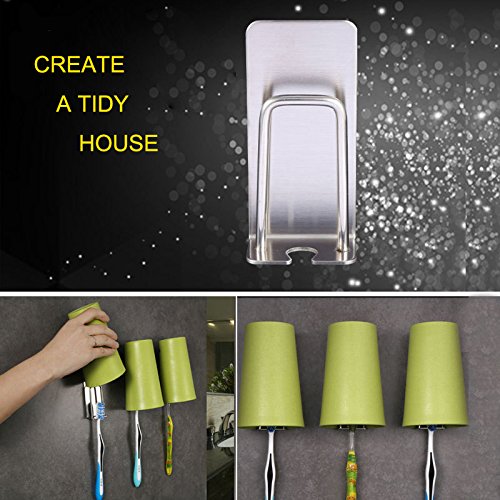 Passionier Stainless Steel Toothbrush and Gargle Cup Holder Wall Mounted Toothbrushing Mug Water Cup Organizer Bathroom Set With 3M Self-Adhesive