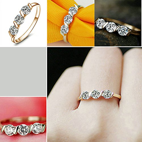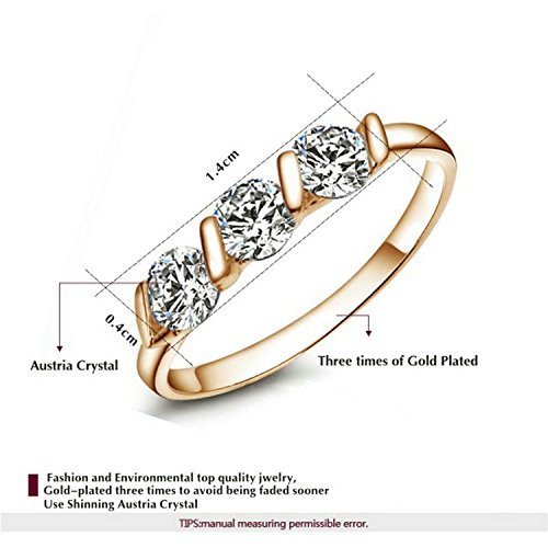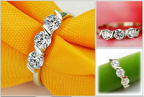 - Feature : The ring is decorated with three super shining cubic zirconia crystal which bringing an elegant and graceful look to any special occasion. / A perfect accessory to your outfit or as an appropriate gift used in wedding and engagement party or other occasions. / The cz crystal zone is about 0.2''*0.6''. / Shipped out in an exquisite jewelry gift box. Delivery time 7-15 days. / One year warranty to ensure you a perfect shopping experience.