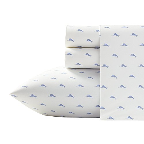 Tommy Bahama Sailfish Percale Sheet Set, Twin, Ocean Blue