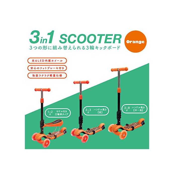 원본상품명: キックボ?ド 子供用 3輪 3in1 サドル オレンジ 1才~ キックスケ?タ? キッズ 幼? 3輪車 三輪車 足けり △_85307
