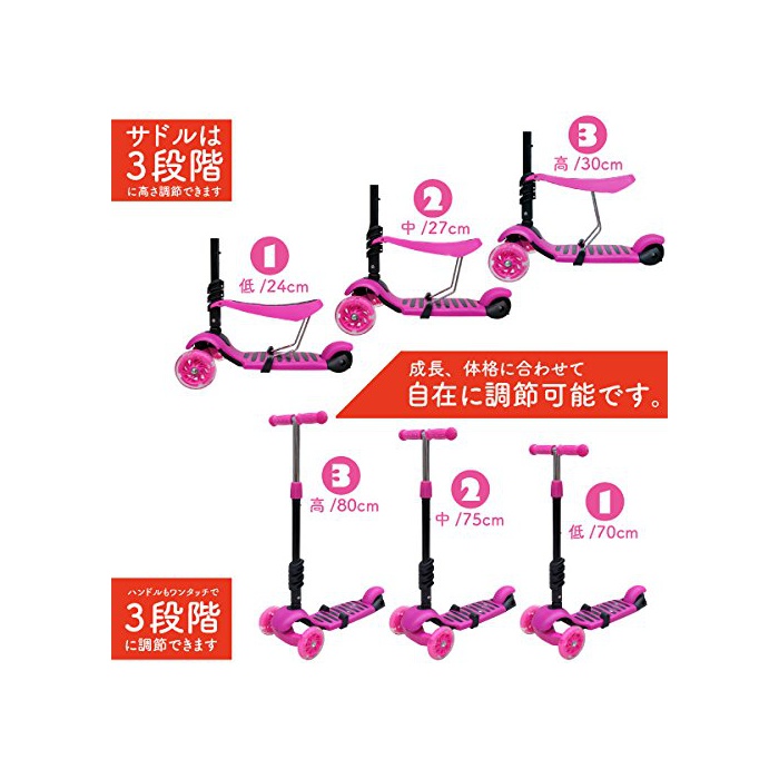아드님의 성장이나 체격 에 따라 자유롭게 다시 짜이는 3 돌아가 타입 킥 보드.