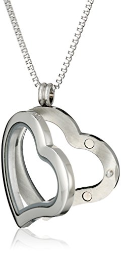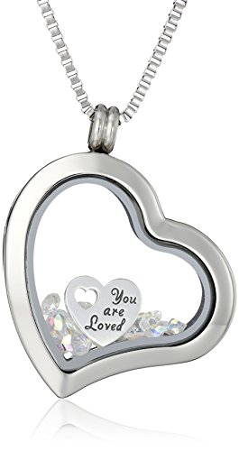Stainless steel heart-shape pendant necklace featuring transparent locket center with loose crystals and engraved "You are Loved" heart cutout charm
