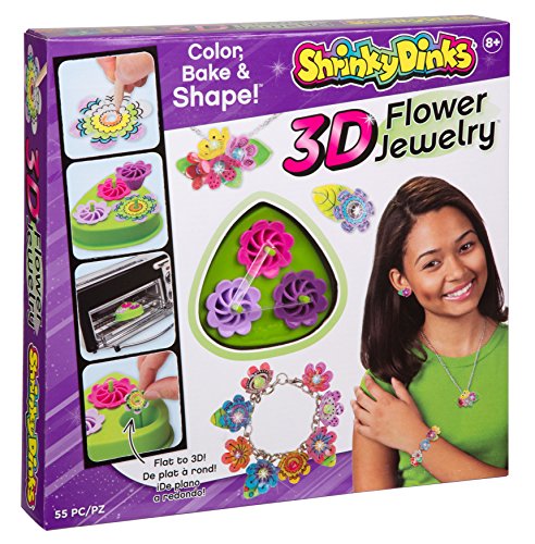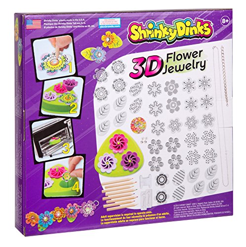 - Includes Flower Mold, Shrinky Dinks, pencils, chain necklace and bracelet, beads, string, beading needles, earring studs and instructions
