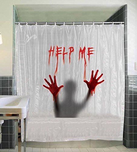 -. Feature : Bloody Shower Curtain / Everybody has that one friend who has to check the bathtub for axe murderers every time they use the restroom. / Perfect for Halloween, costume parties, etc. / 6 ft. x 6 ft. / Vinyl.