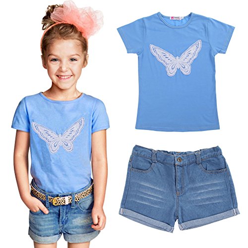 -. Title : Chinatera 2pc Summer Baby Girl Short Clothes Set:Butterfly Shirt+Denim Pants