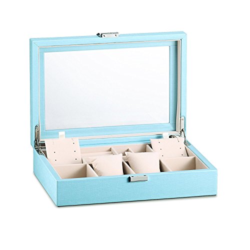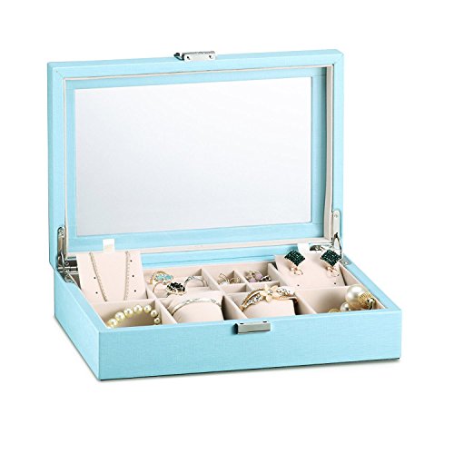 Vlando Fetish Medium Jewelry Box, Glass Lid Jewelry Organizer to Display your Jewels - Blue