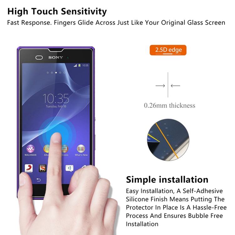 2.5D 0.26mm 9H Premium Tempered Glass Screen Protector For Sony Xperia T3 D5103 Toughened protective film
