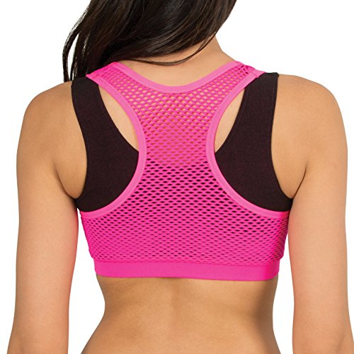 - Title : Fruit of the Loom, A Fresh Collection Junior's Double Seamless Mesh Sport Bra (L, Black with Electric Pink Mesh)
