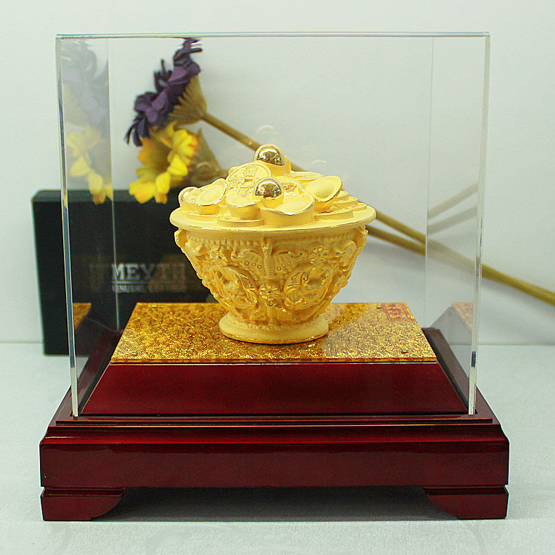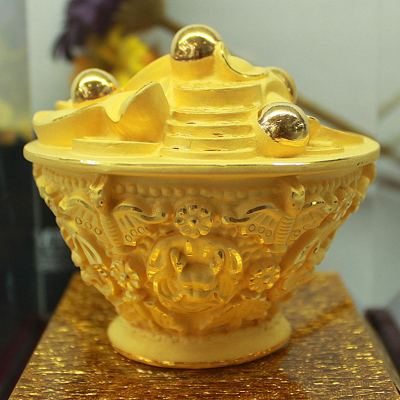 高档结婚礼物金饭碗家居摆件富贵金碗送出生婴儿小孩满月礼品