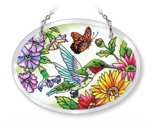Amia Beveled Glass Small Oval Suncatcher Hand-Painted Butterfly Design, 4-3/4 by 3-1/2-Inch