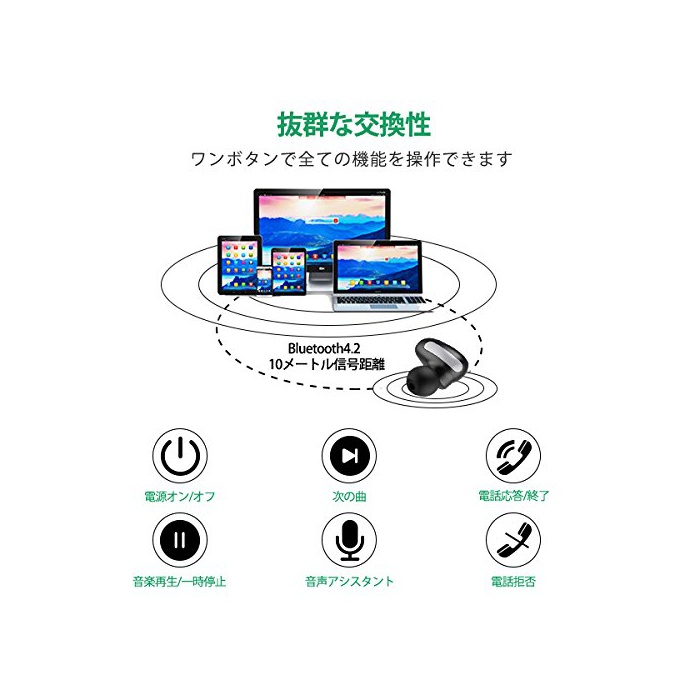 【완전 wireless 좌우 독립 타입】케이블 없음2개의 이어폰을 한 명과도(모두) 두 명과도(모두) 동시에 사용할 수 있고, 일절 혁신인 완전 wireless 좌우 독립 타입입니다,일&가사&런닝&운전에는 최적인 와이 레스 헤드 세트입니다.또한 음악 재생 중으로 착신을 종료후,자동적으로 음악 재생에 옵니다.