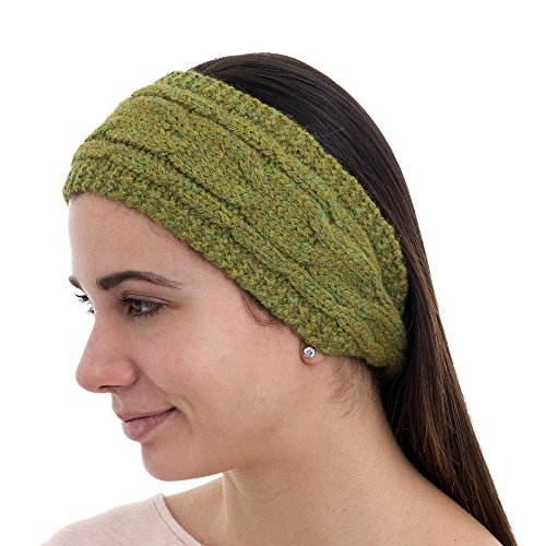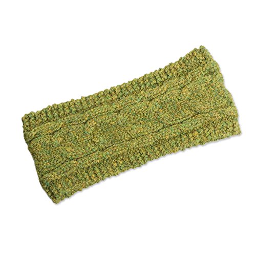 About this item: Knit from an alpaca wool blend, this Andean ear warmer features a braided pattern, flanked by ridged borders. Ricardo Holder designs the ear warmer in a melange of light olive and gold for a complex look. - Dry clean only