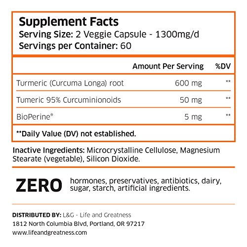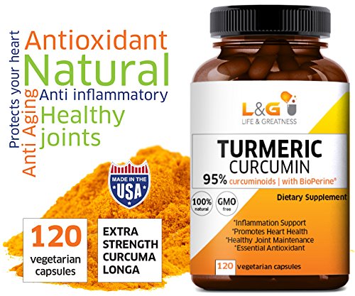 L&G Turmeric Curcumin C3 Complex® Supplement with 10 mg/d of Piperine Extract for Better Absorption. 100% Real Curcuma Longa Powder Capsules,...