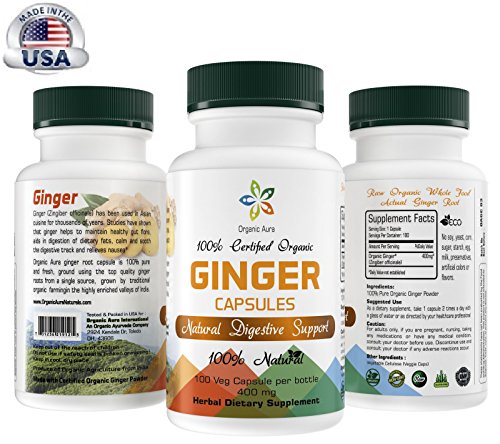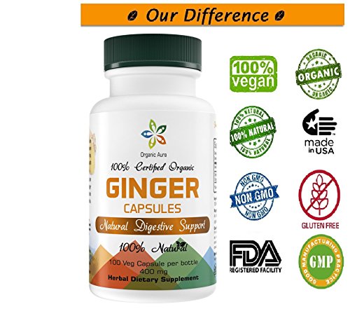 Certified Organic Ginger Root Powder Capsules. 400 mg - 100 Veg Capsules. Natural Digestive Support. Enhances overall Health and Vitality. 100% All...