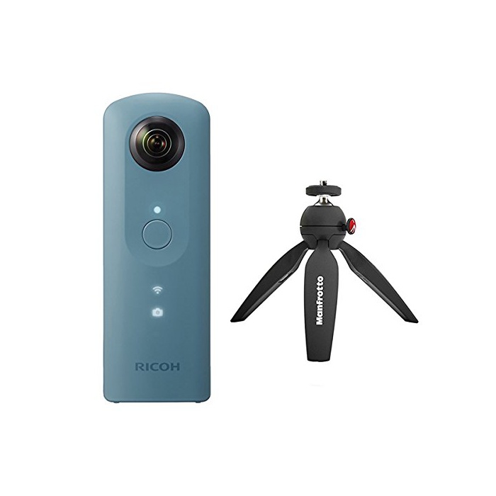 인기의 360°카메라 RICOH THETA SC(블루) 와 촬영시에 편리한Manfrotto 미니 삼각 PIXI 블랙 MTPIXI-B가 세트로