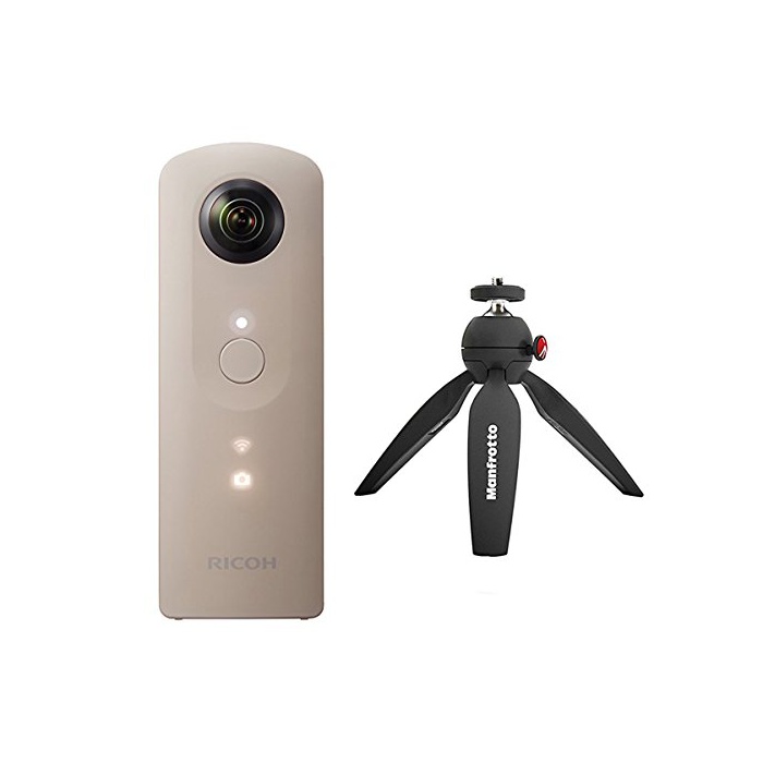 인기의 360°카메라 RICOH THETA SC(베이지) 와 촬영시에 편리한Manfrotto 미니 삼각 PIXI 블랙 MTPIXI-B가 세트로