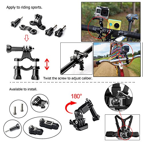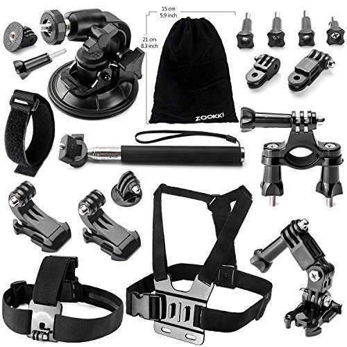 Zookki Accessories for GoPro Hero 4 3+ 3 2 1 Black Silver Camera Accessory Kit for GoPro 4 3+ 3 2 1 SJ4000 SJ5000 SJ6000 in Parachuting Swimming Rowing Surfing Skiing Climbing Running Bike Riding Camping Diving Outing and Other Outdoor Sports