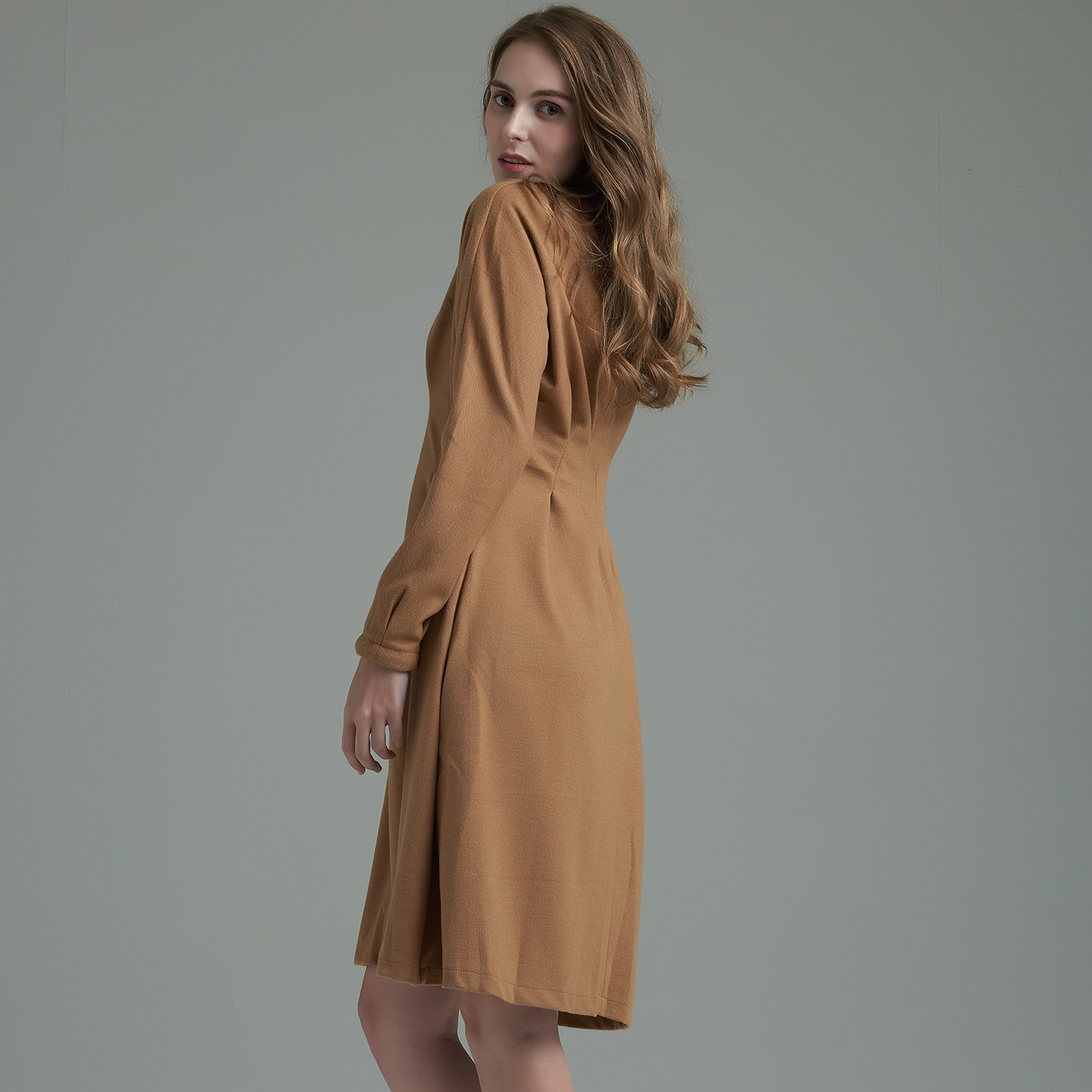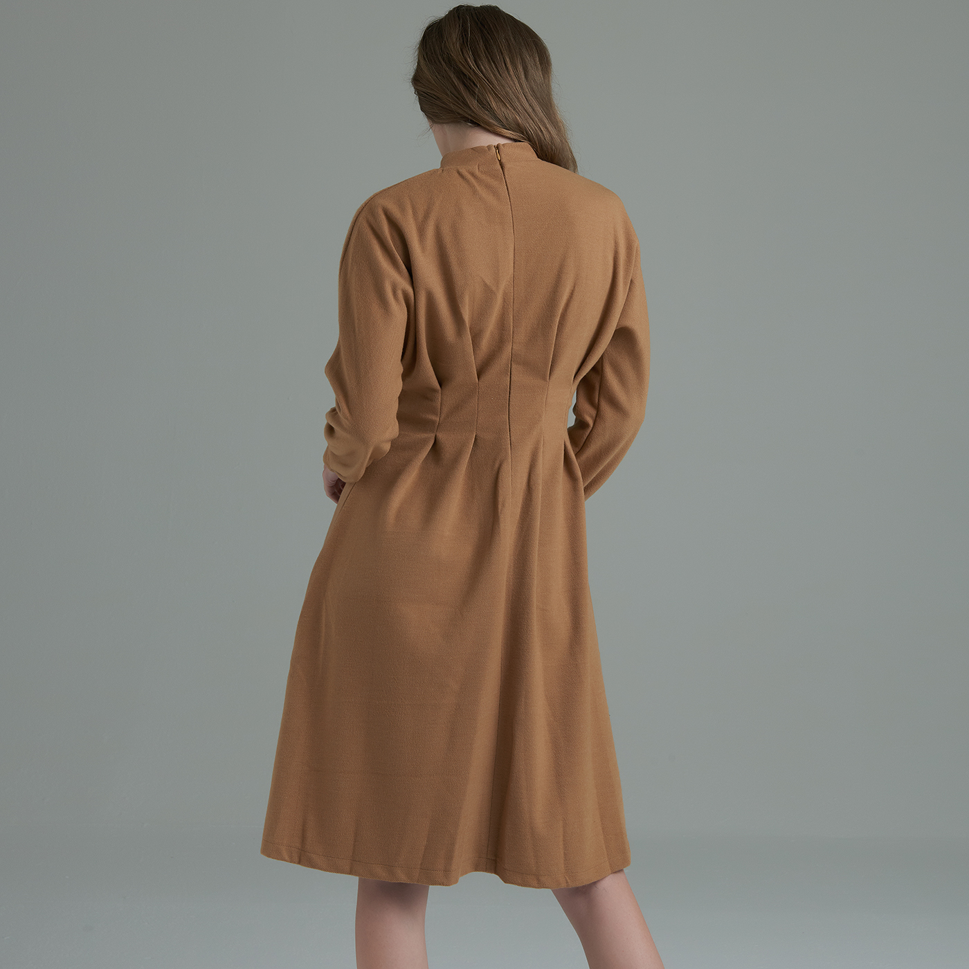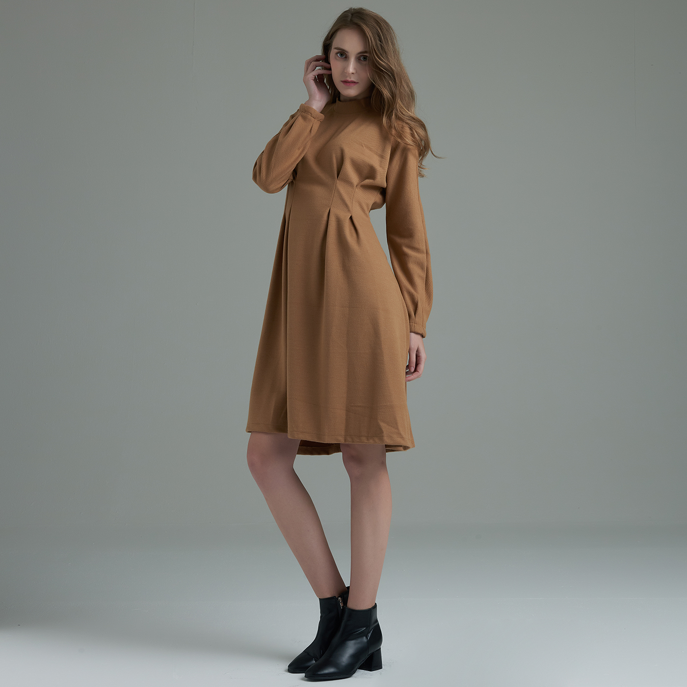 허리라인의 디테일이 우아하고 소매의 볼륨감이 여성스런 스타일입니다.