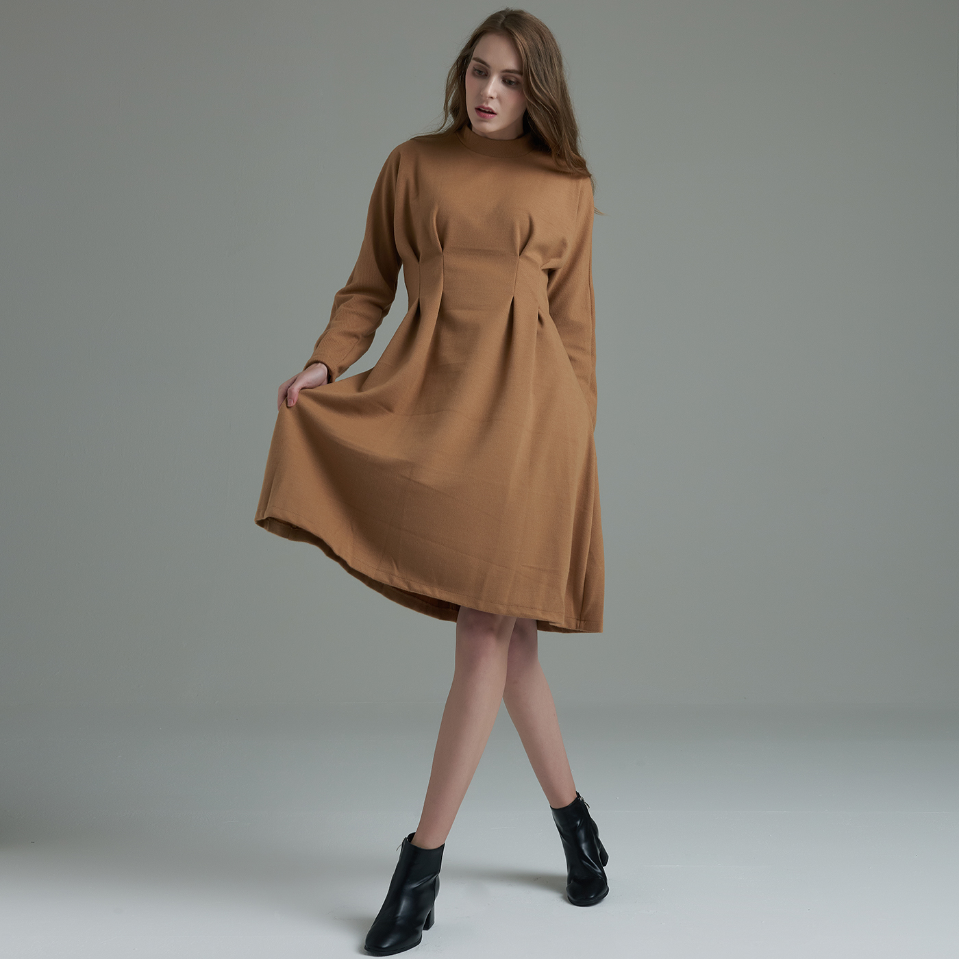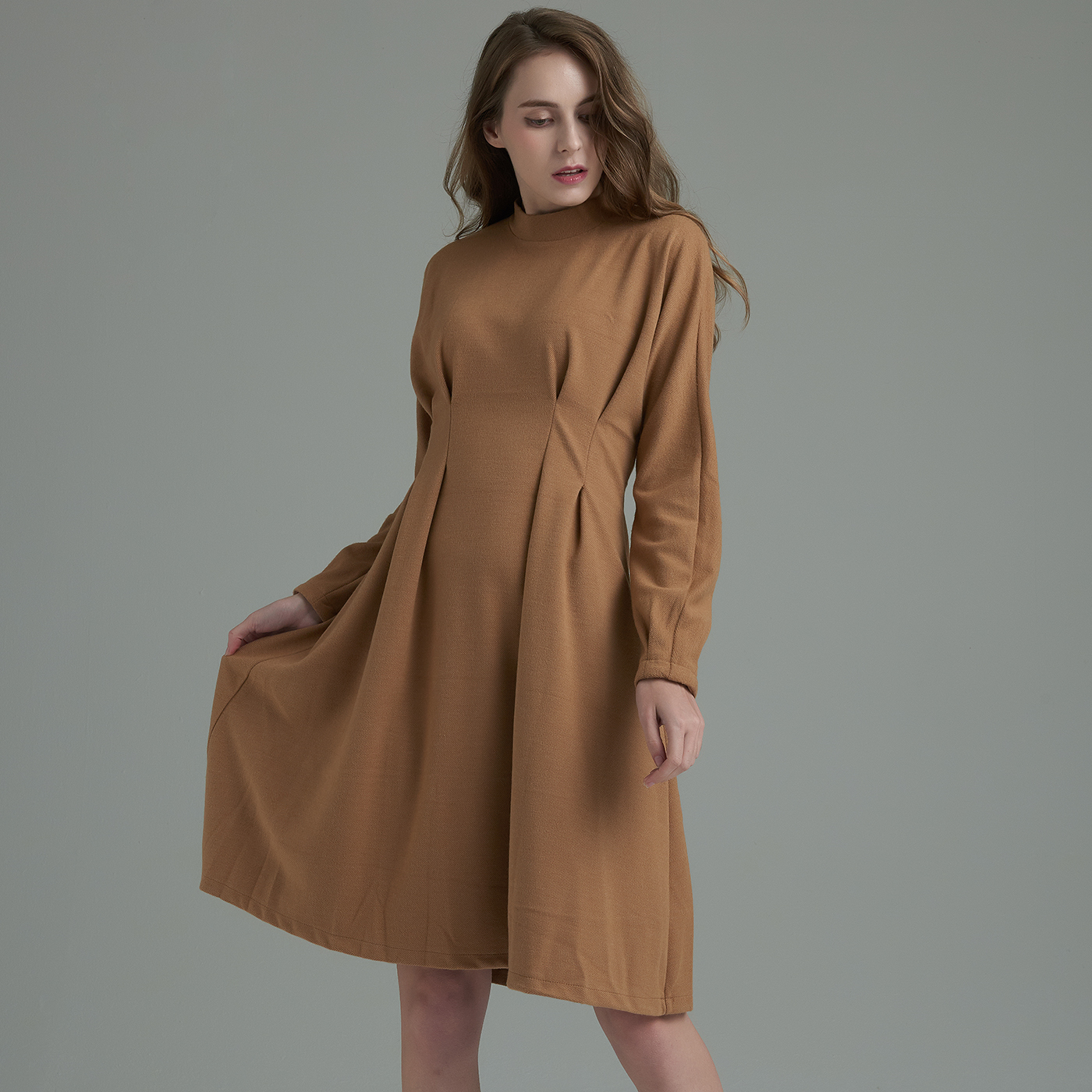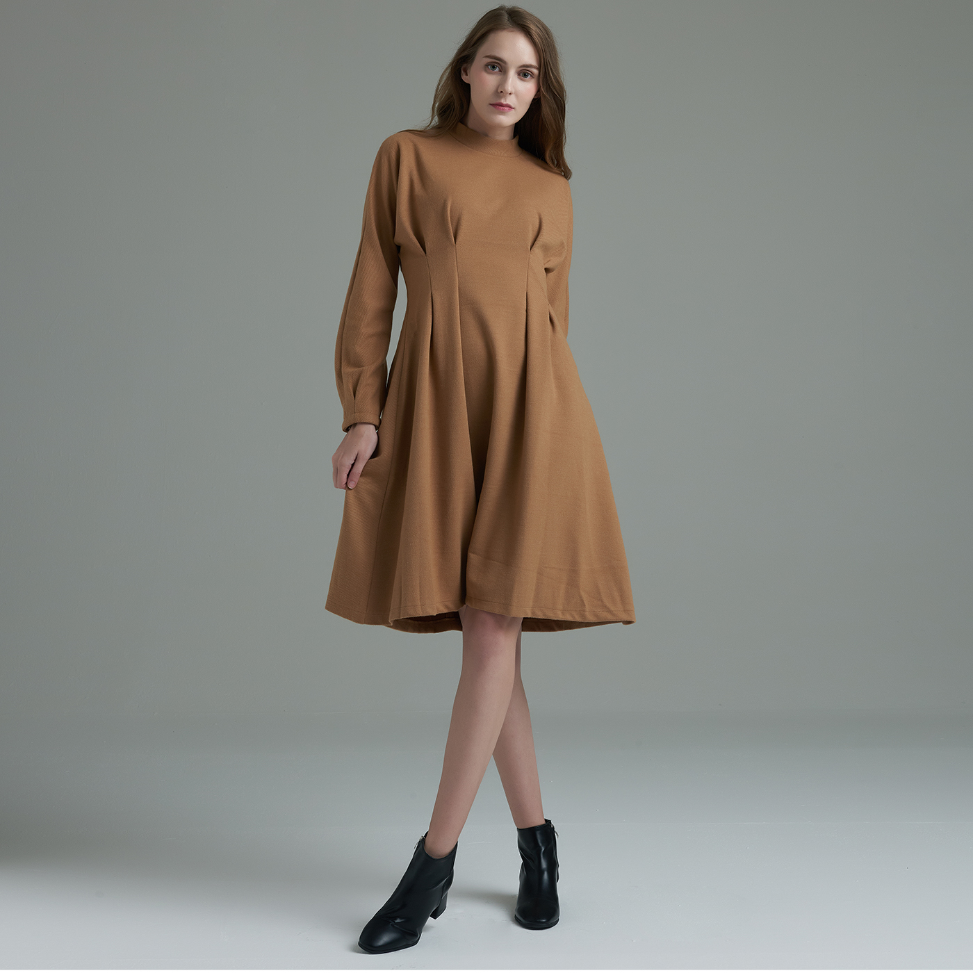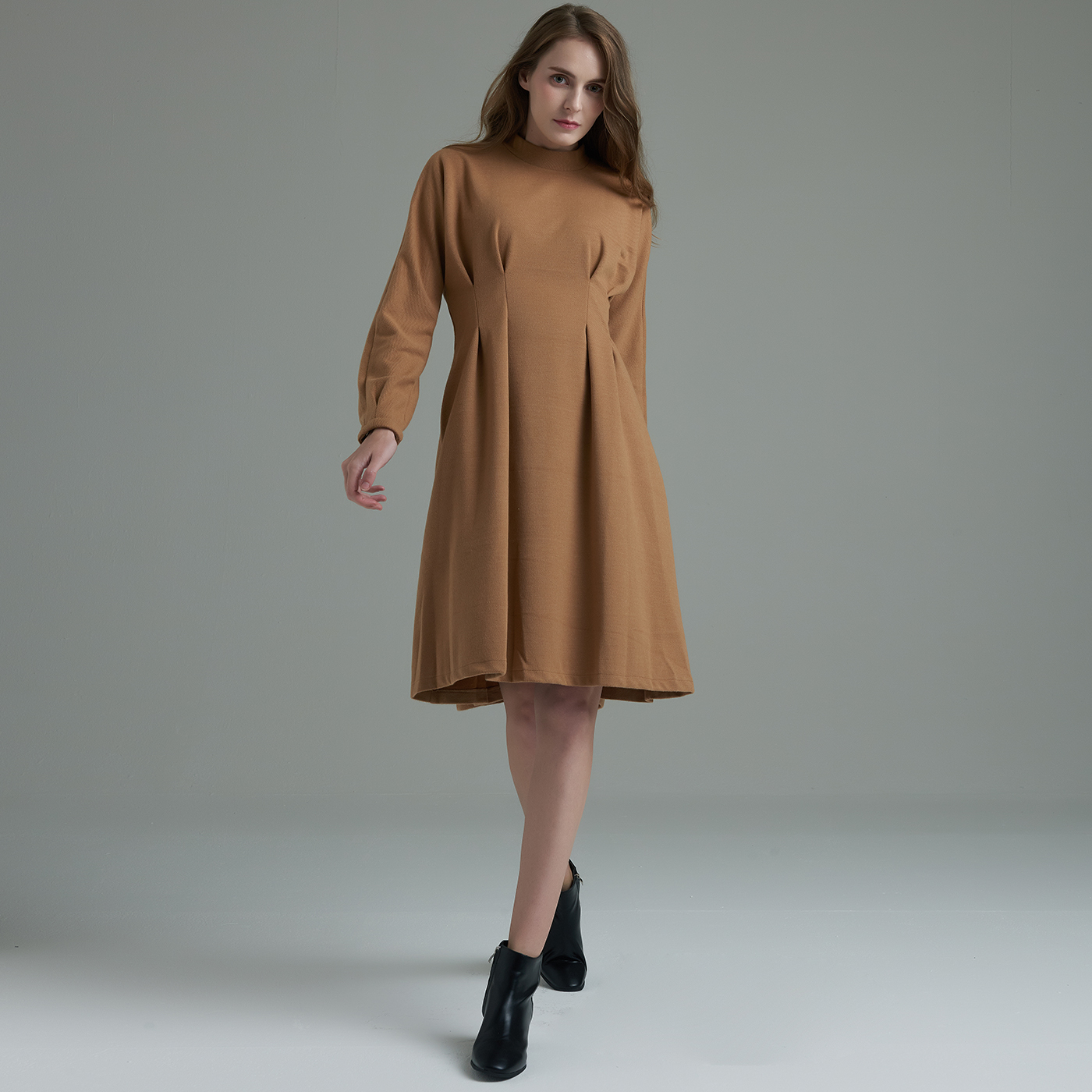 허리라인의 디테일이 우아하고 소매의 볼륨감이 여성스런 스타일입니다.