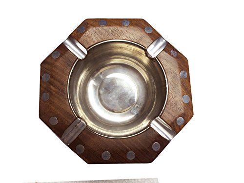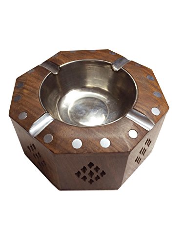 -. Feature : Dimension : Length: 4.5 Inches, Width: 4.5 Inches, Heigth: 2.5 Inches, / Wooden Ashtray with Steel Cup inside. / Deep, Wide Grooves 4 spots for resting a cigarette / Material: Wood | Colour: Brown, Cigarette holder box, Octal shape With Carving-Inlay Work / Fine Wooden Ashtray for Home, Office, Restaurants, Hotels etc.
