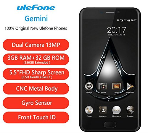 -. Title : Ulefone Gemini Dual Back Cameras 4G Cellphone 5.5" FHD 3G+32G MT6737T Front Touch ID Metal Unibody (Black)