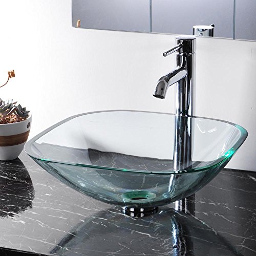 Bathroom Tempered Glass Vessel Sink Natural Clear Square Shape Transparent Basin
